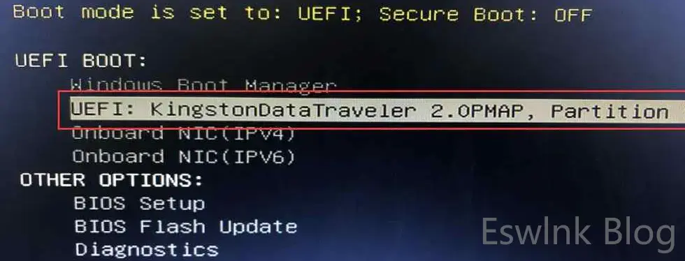 1、将U盘插入电脑,开机后调出「F10」或「F12」,选择 USB启动。注意此时电脑的启动模式应该是“UEFI”,不同的主板型号设置方式不同,这里不再赘述。