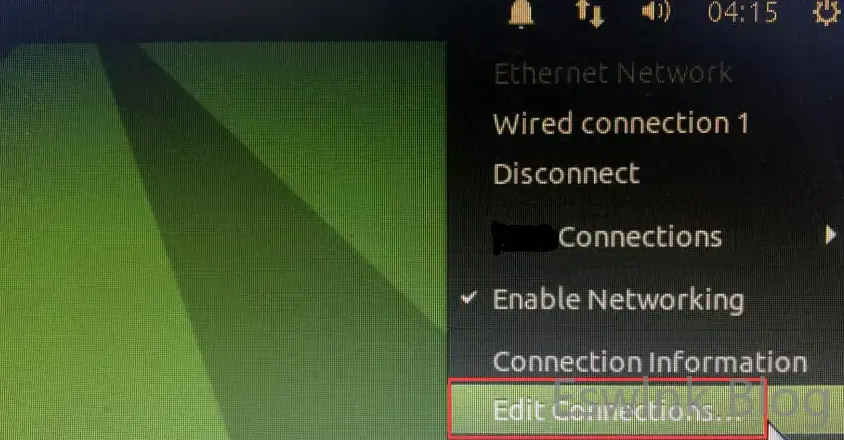 3、进入系统,点击桌面右上角的网络图标,选择“编辑连接”进行网络配置。