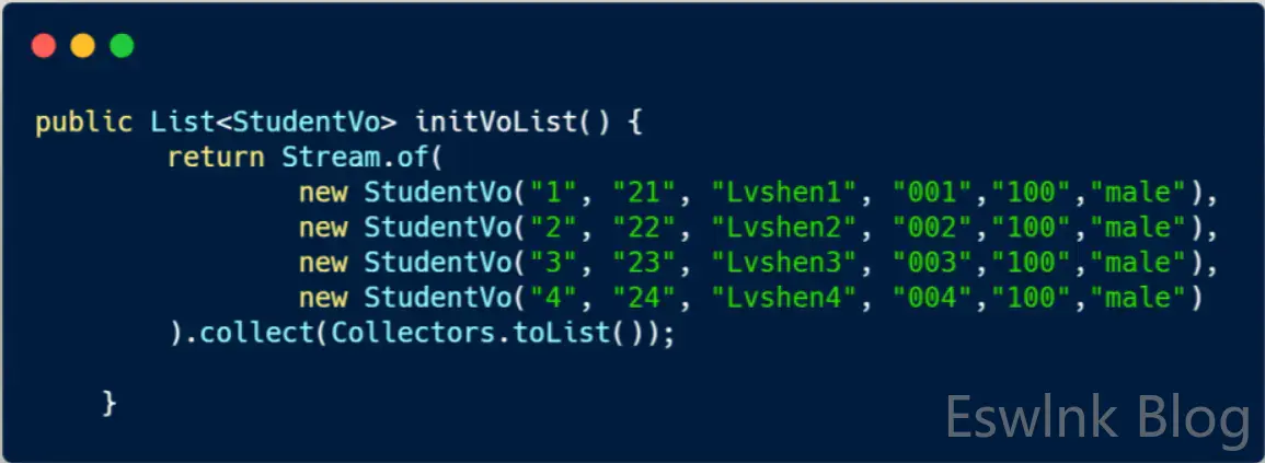 List<StudentVo> voList = initVoList();