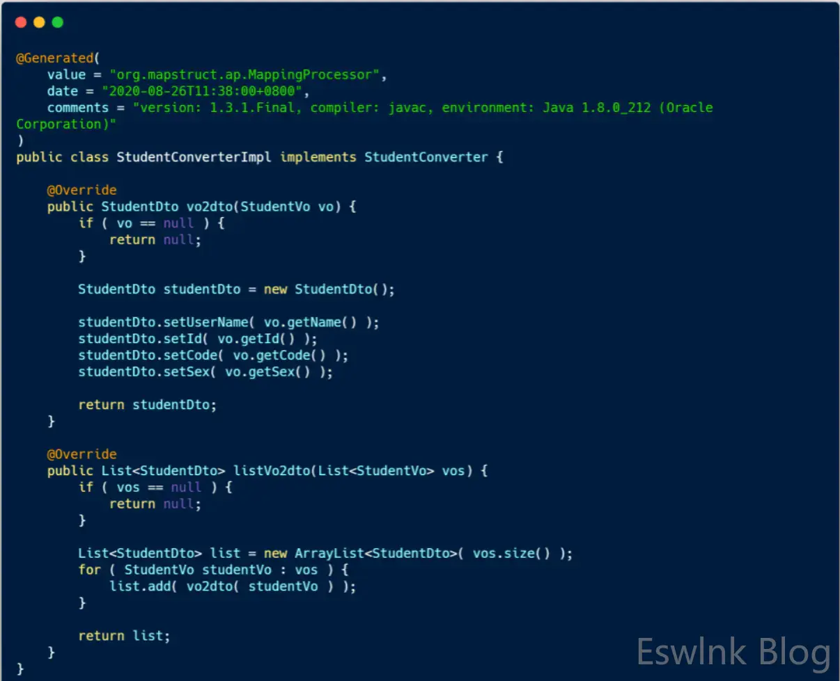 @Mappings用来声明成员属性的映射,source = "name",target = "userName"即将StudentVo中name的值拷贝给StudentDto中的userName,如果属性名称相同,就不需要做这个映射。