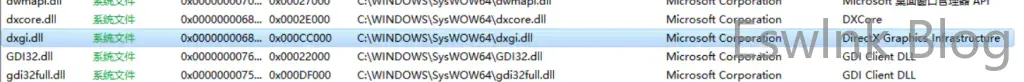 他在自己的根目录检索了很多dll程序,其中排除上面注册表中的我们选择 dxgi.dll 作为我们的劫持目标