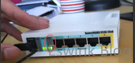 2、接着给设备通电,电源指示灯和 ACT 灯同时亮起,继续按住不要松开,过一会等到 ACT 灯闪烁,松开 RES 键,设备会自动重启。