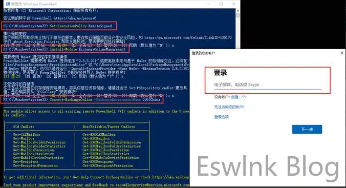 2、连接到 Exchange Online PowerShell,并验证管理员账号密码。