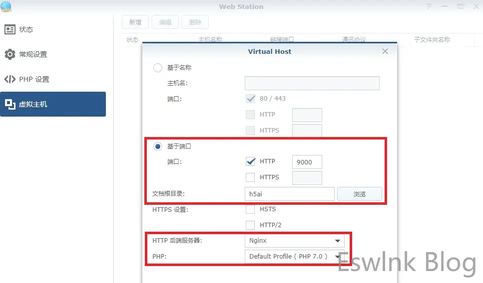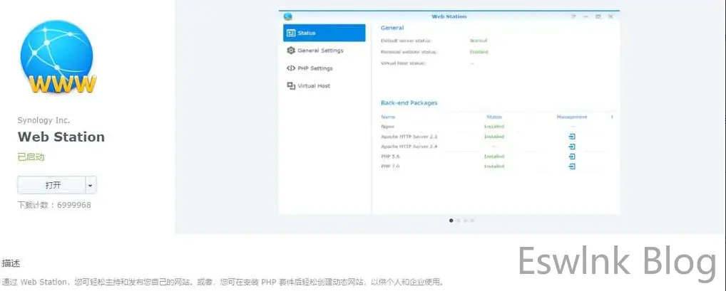 - 登录群辉 DSM,将“Web站点”设置在软件包的中央。