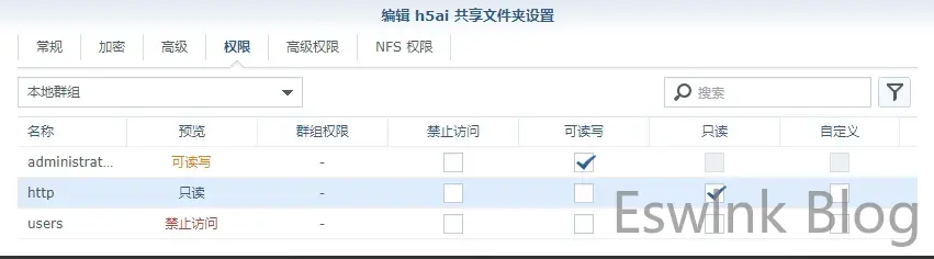 - 文件夹使用许可网页,设定“http”群为“仅读取”的权利。