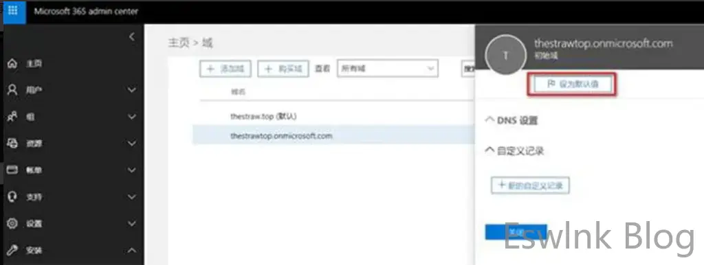 - 再次点击左边的“安装”菜单栏,设置长的域名为默认的域名,然后删除定制的域名。