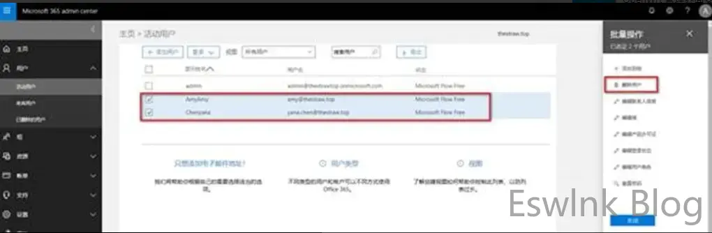 - 1请退出当前账号,使用新账号重新登录https://www.office.com,点击左侧菜单栏用户>活动用户,删除用户自定义域名。