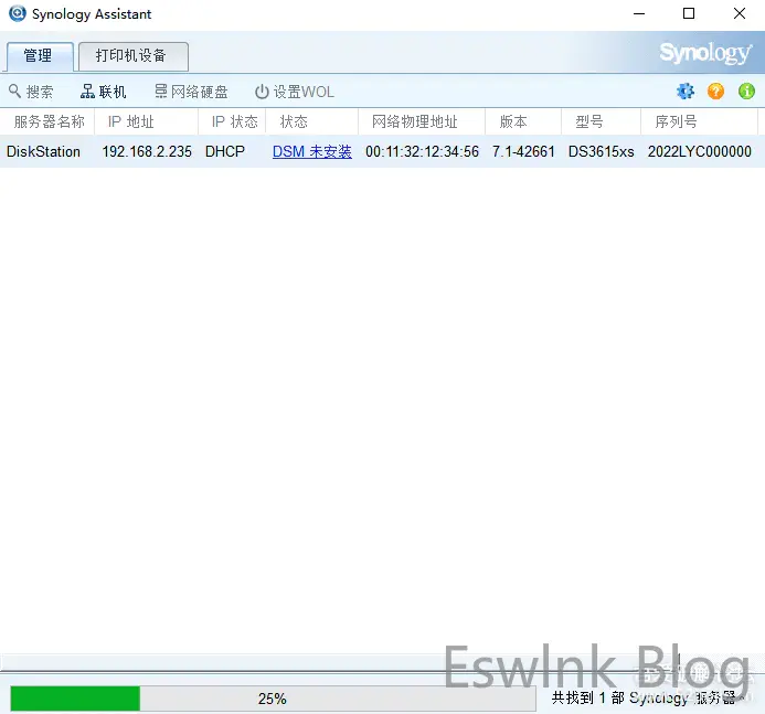等待2-3分钟,使用群辉助手或者网页搜索群辉设备,进行安装系统即可
