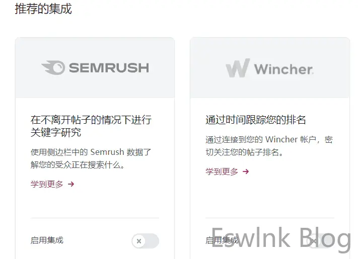 在“集成”选项中,建议关闭“Semrush”与“Wincher”。