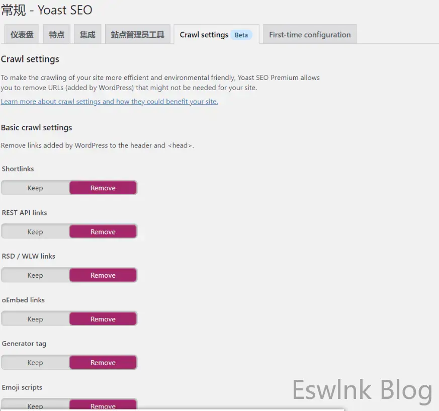 WordPress 在网页的标头<head>中添加了很多 URL 和一些标签,它们对于SEO和浏览者而言都是无用的,反而会让HTML变得臃肿。具体的内容选项内容如下: