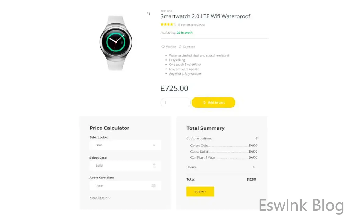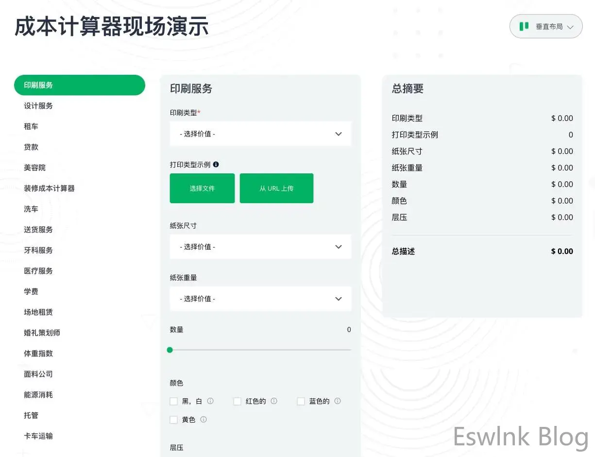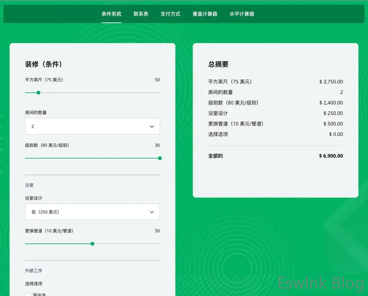 为产品计算器添加额外的选项。因此,客户可以进行输入,并自动查看估计的总价格。