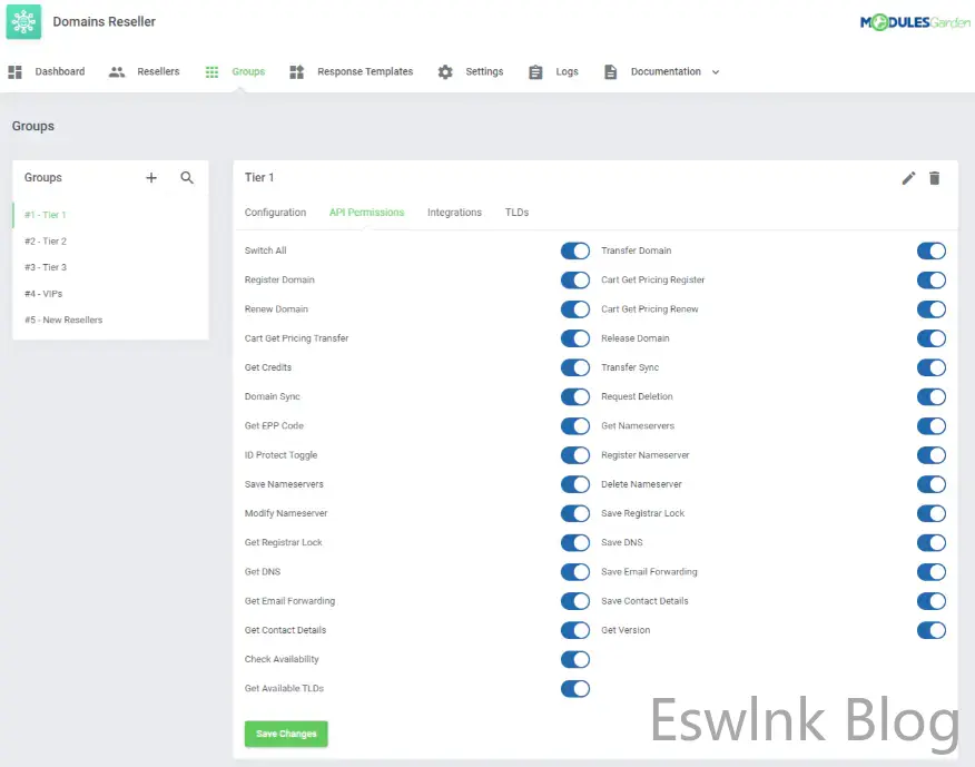 您需要做的就是在 WHMCS 中配置主要产品,然后生成您自己的域名注册商集成模块,供您的经销商直接在他们的系统中安装。之后,针对 WHMCS 的 Domains Reseller将让您分别为每个经销商组确定不同的 TLD 定价,处理信用和退款政策,提供文档,以及监控 API 日志和收入统计。通过批量执行的操作以及在客户订购之前指定的产品后自动转换客户,您可以轻松地增加新成员的经销商群。同时,您的经销商将能够快速预览已获客户下达的订单以及在经销商区域整齐组织的其他关键细节。