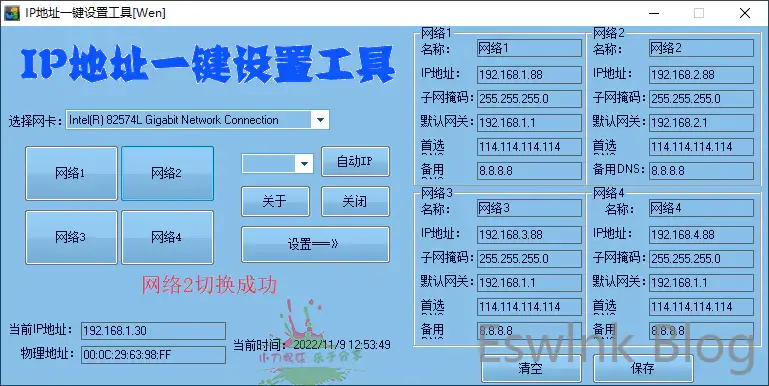 这是一款小巧实用的网络设置管理一键IP地址切换工具,可以针对不同的网络环境,一键为您您更改所需的网络设置值。你可以设置六组不同的网络参数值,支持多网卡(虚拟网卡也支持)设置,可设置4个IP地址,同时可以设置自动IP,支持操作系统:XP、Win7-11如果运行设置有问题,请使用管理员身份和兼容默认运行。软件使用VB语言编写如有报毒,纯属误报,请大家放心使用!