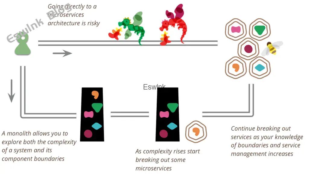 这些规律在我同事中产生了长期的讨论:你不应该在新项目之初就采用微服务架构,即使你坚信该应用未来会因业务演进而变得巨大无比。