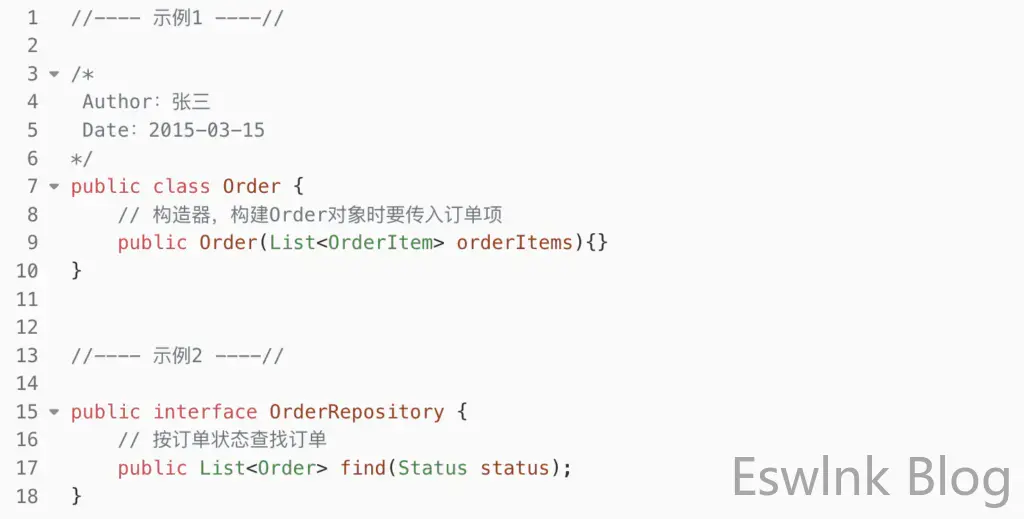 - 示例1:类上的注释完全没必要,因为VCS工具能够很好地做记录。