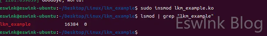 Lsmod | grep “lkm_example”列出加载模块
