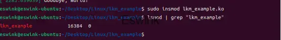 module_exit(lkm_example_exit);以上代码实现,当模块加载后,显示设备主要编号,卸载后显示“Goodbye, World”