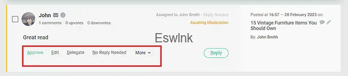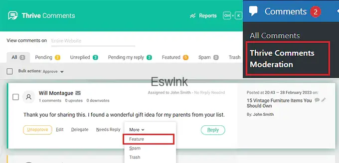 要突出/隐藏评论,请从 WordPress 管理侧边栏转到评论 » Thrive Comments Moderation页面。