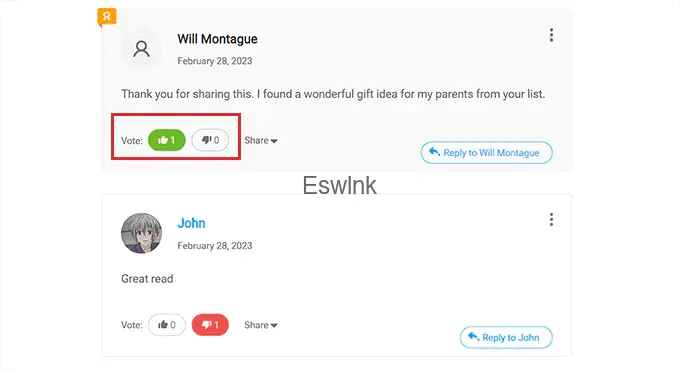 您还可以在评论部分添加赞成票/反对票功能,类似于 YouTube 等流行的社交媒体平台,以提高用户参与度。