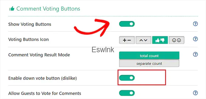 之后,您还可以使用“投票按钮图标”选项为您的评论选择代表赞成票/反对票功能的图标。