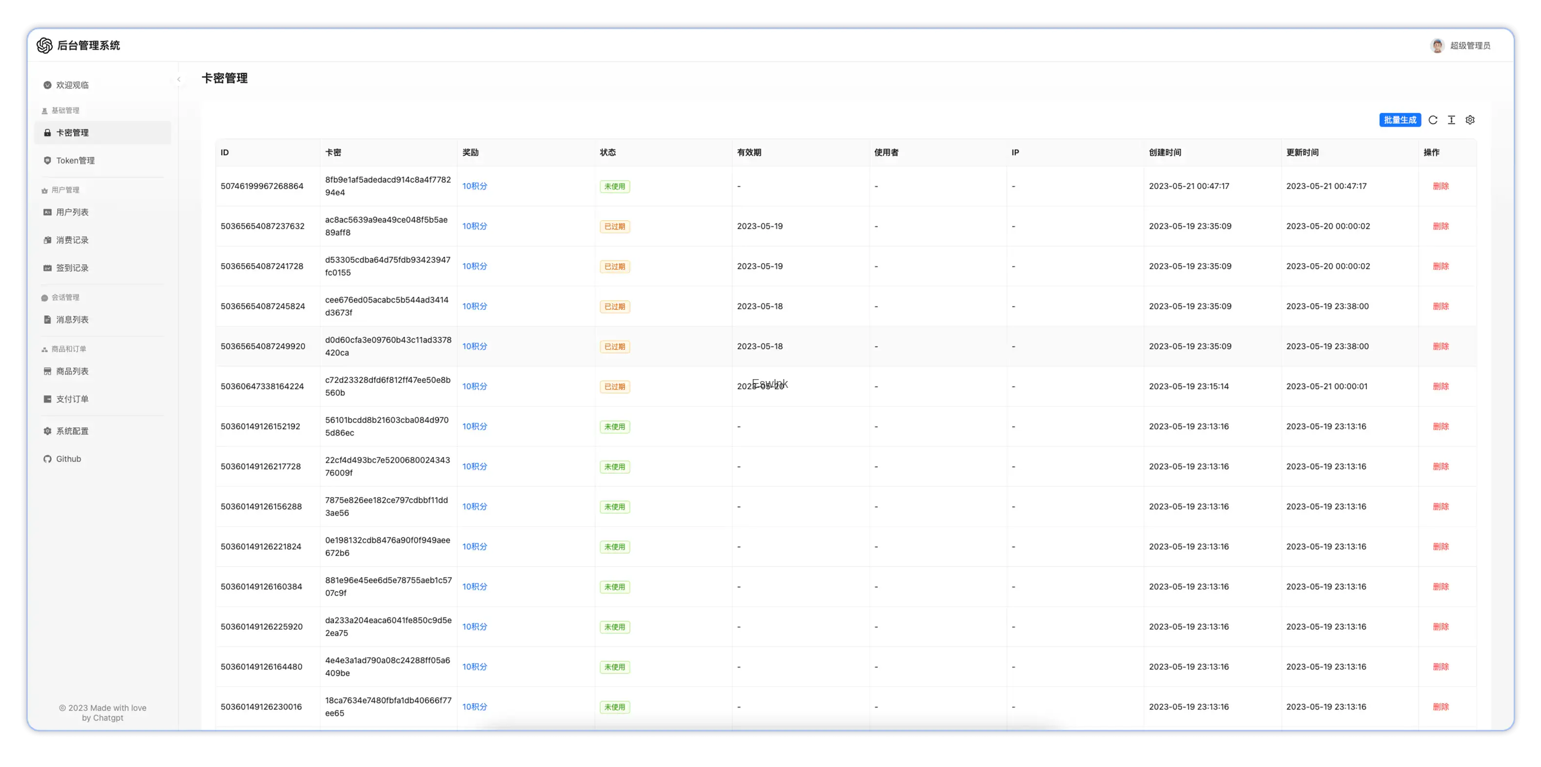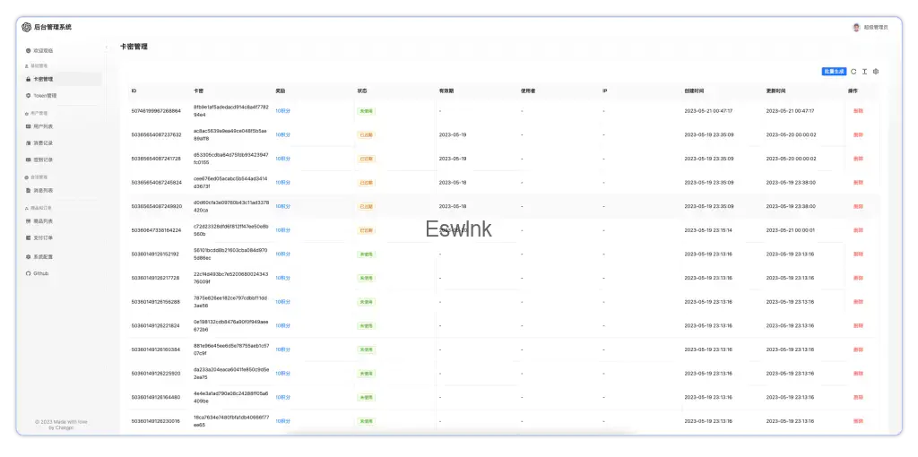 该应用还提供了一个后台管理系统,方便您对用户、Token、商品和卡密等进行管理。
