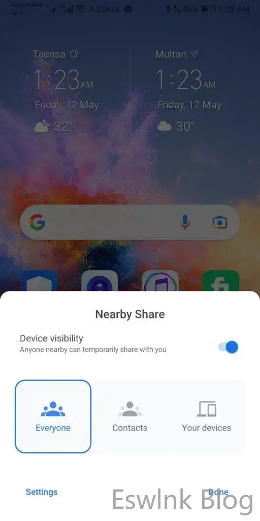 - 在您的 Android 手机上,您可以选择要从谁那里接收数据。点击操作中心的“附近共享”按钮后将出现弹出窗口。