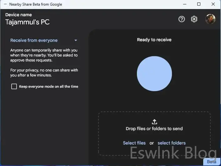 - 首先,您需要在您的 PC 上安装附近共享。您可以点击此链接并单击“Get Started with Beta”来完成此操作。