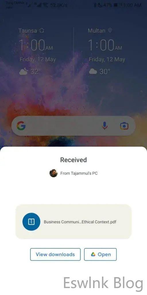 - 成功接收文件后,您将能够在手机存储或 Google Drive 存储中查看它们。