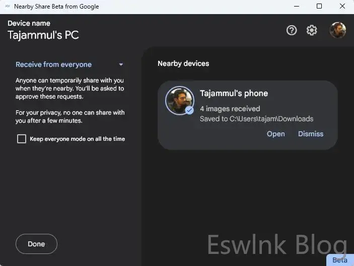 Nearby Share 是 Google 的一项功能,允许用户在 Android 设备之间共享文件、照片、文档等数据。用户还可以在他们的 Android 设备和 Chromebook 之间共享数据。附近共享支持范围广泛的文件类型和大小。它于 2020 年 8 月推出,用于在运行Android 6.0或更高版本的 Android 设备之间共享。谷歌最近也宣布扩大该功能在Windows上的可用性。尽管适用于 PC 的功能仍处于 Beta 测试阶段,但可以在此处轻松访问 Beta 版本。