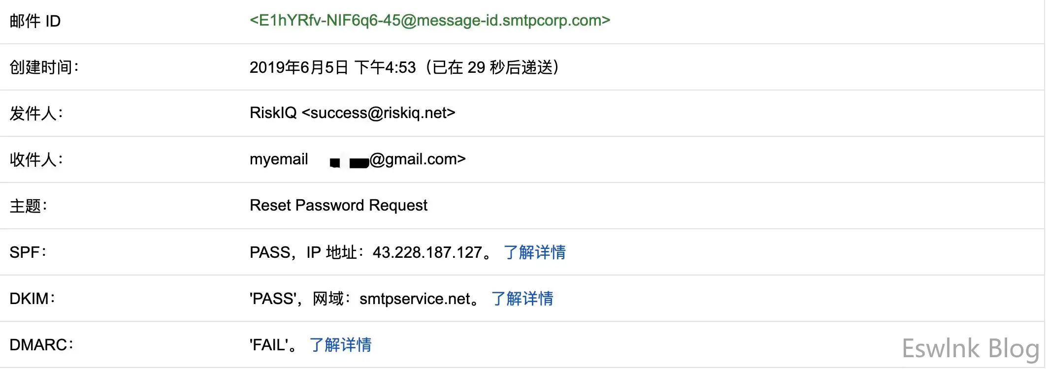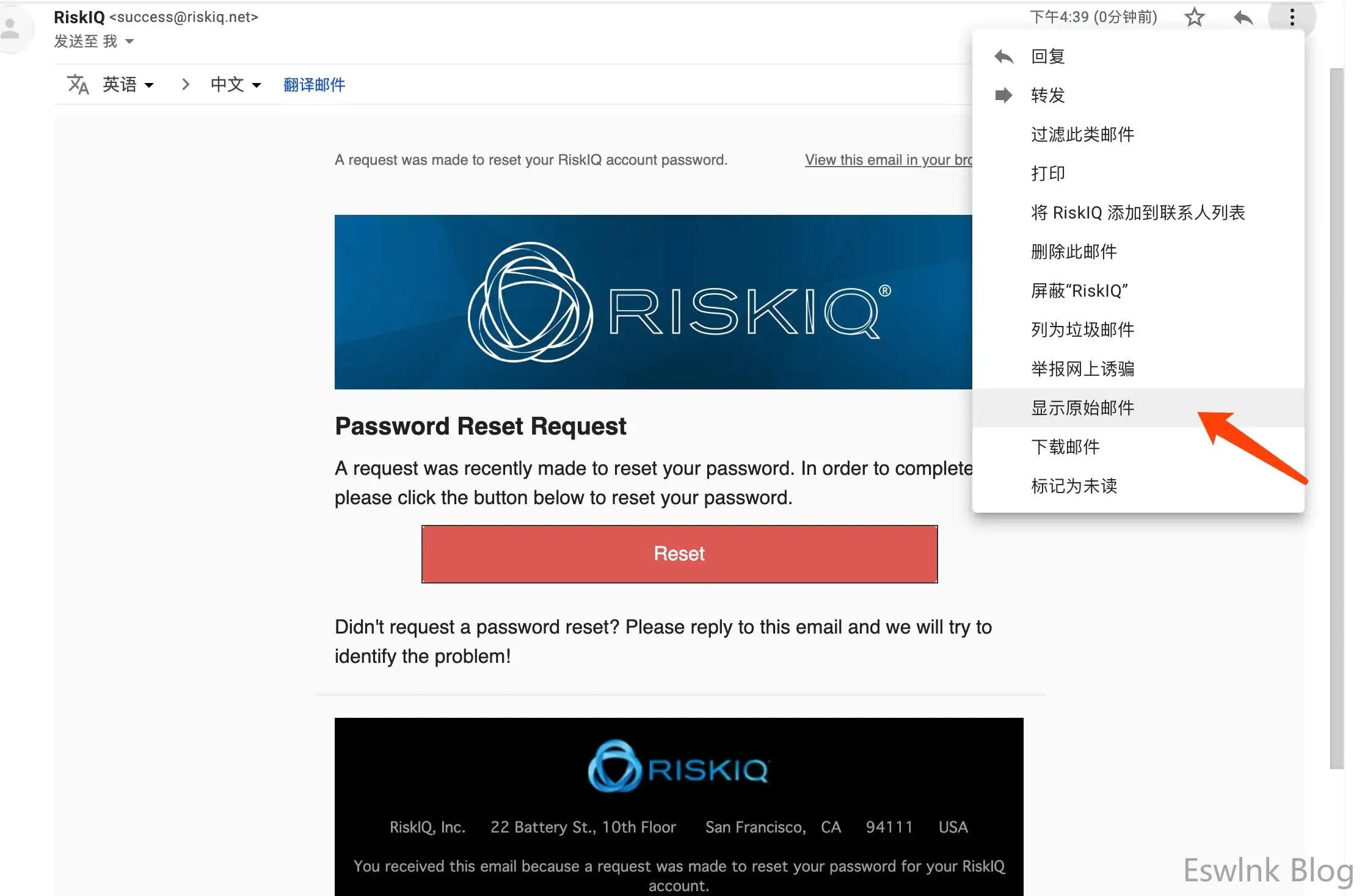 选择显示原始邮件,并将其内容保存。