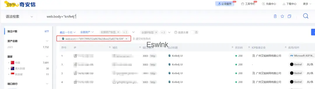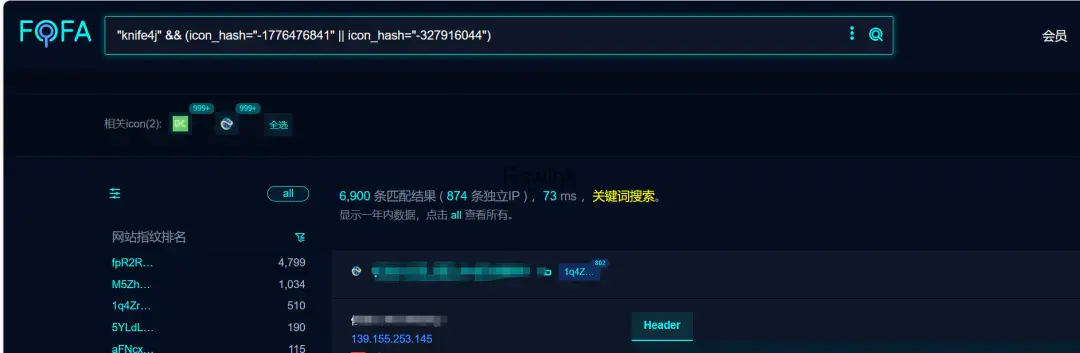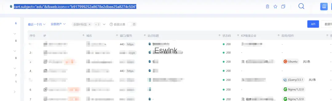 但是这时候其实会发现资产并不多,因此在鹰图上也进行搜索