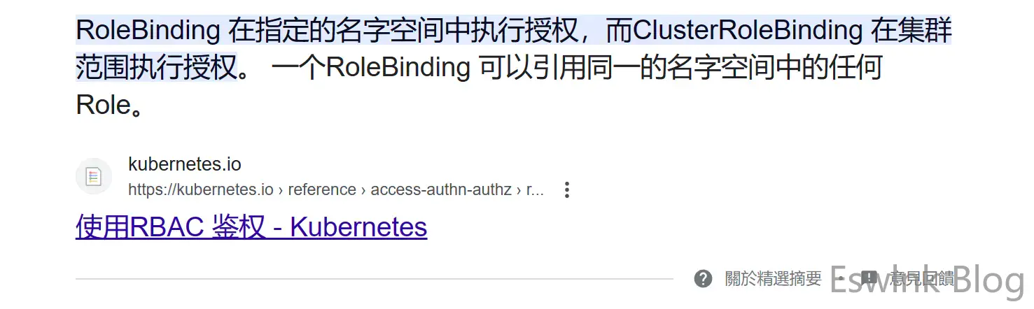 apiGroup: rbac.authorization.k8s.io没有看错,我们使用的是RoleBinding而不是ClusterRolebinding来完成权限绑定。前文提到,RoleBinding是对某个namespace进行的权限绑定,而ClusterRolebinding是对整个集群做权限绑定,可以在RoleBinding时可以通过roleRef引用ClusterRolebinding,从而将集群的限制策略转为对namespace的权限绑定