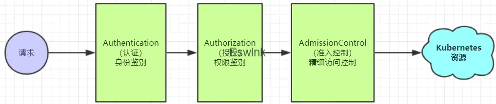 基础设施和服务的权限授予有相同之处,但又不完全相同。它们相同的地方在于概念,都是为了控制对集群资源操纵的能力,这一过程在Kubernetes中叫做授权(Authoriazation),可以参考下图;不同的地方在于控制单元,基础设施的权限是以用户账户(User Account)的权限为单位的,而服务的权限是以SA账户(ServiceAccount)为单位划分的。