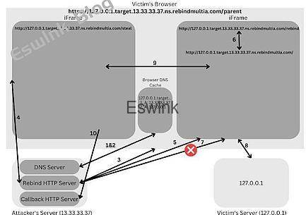 文章介绍了`rebindMultiA`工具及其用于执行多A记录重新绑定攻击的技术细节。这种攻击是DNS欺骗的一种变种,通过配置恶意DNS服务器返回两个IP地址(