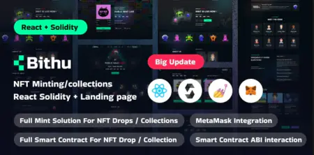 本文介绍了Bithu——一个用于NFT铸造和收藏的React JS登录页面模板,结合Solidity智能合约,适用于MetaMask钱包。Bithu模板具备现代设计风格,提供完整的NFT投资组合页面所 ...